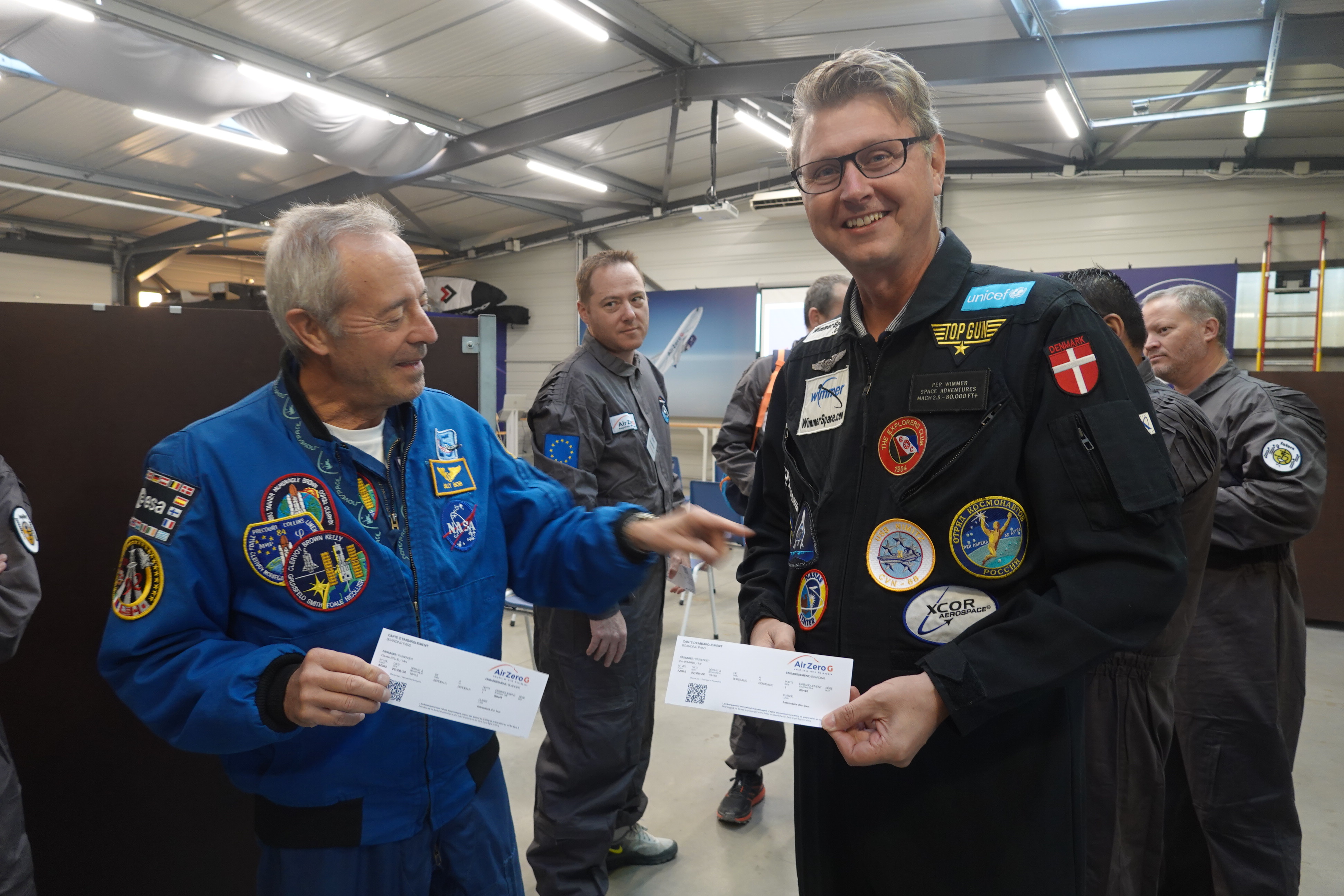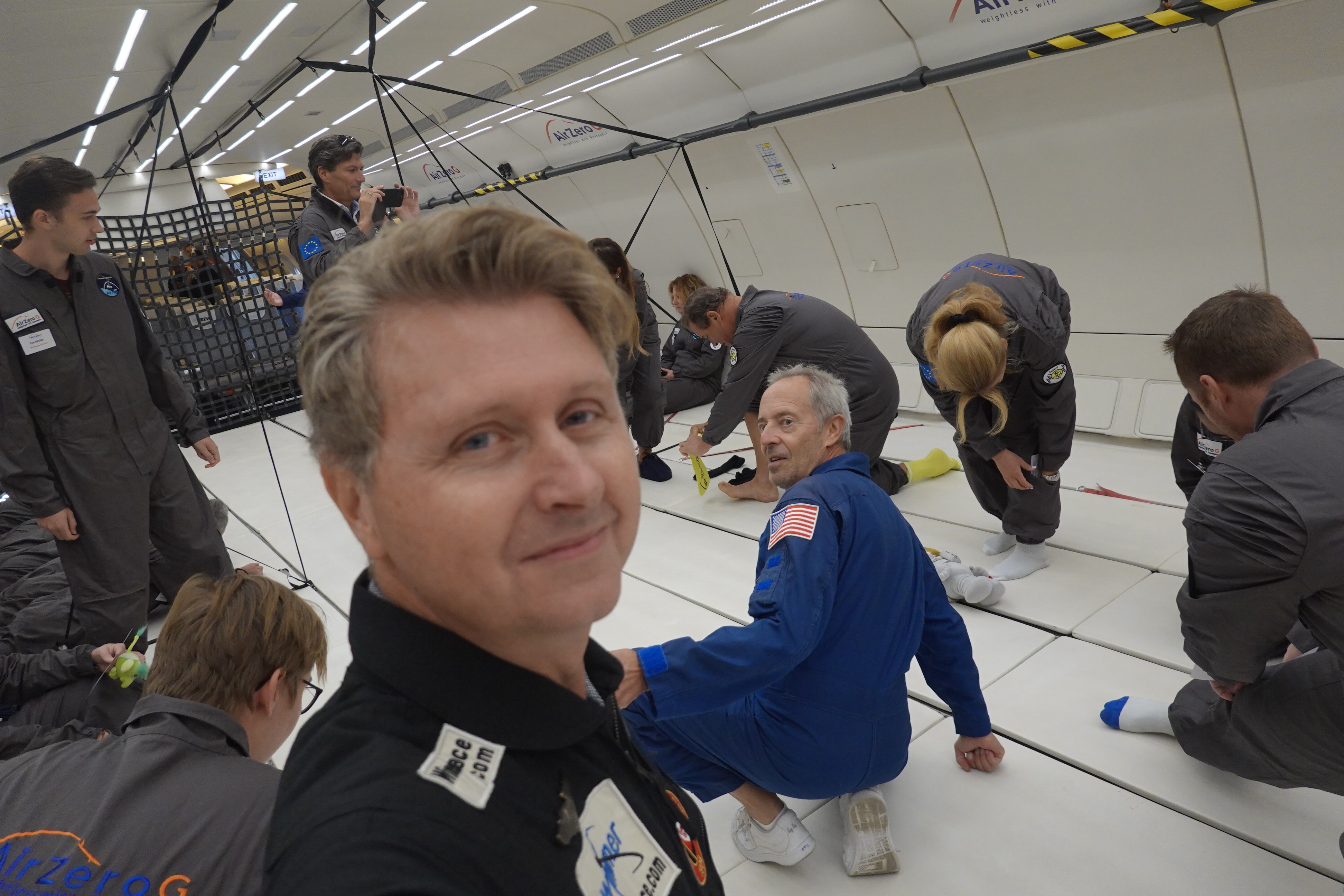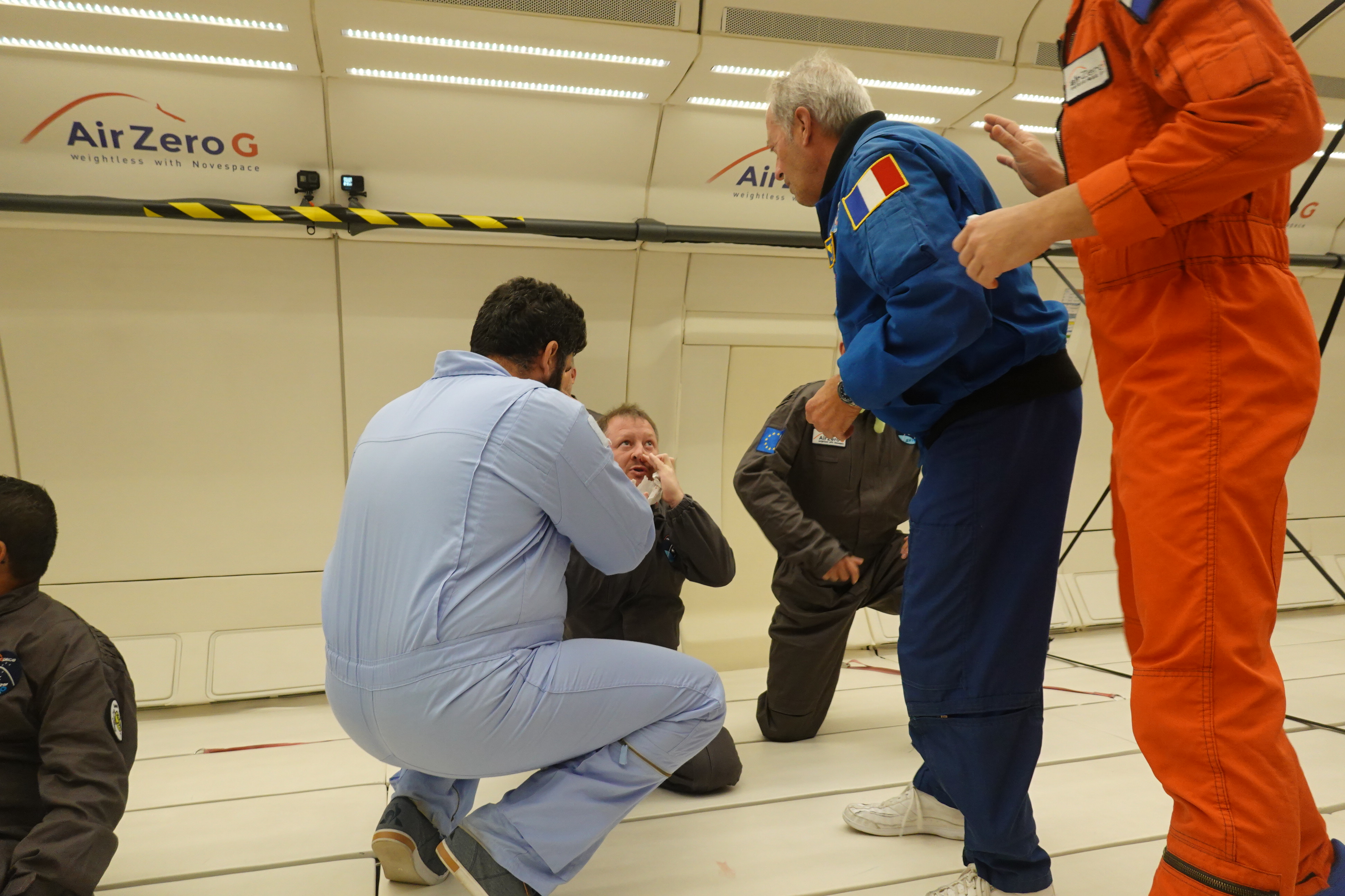 Zero-G flight with ESA astronauts Jean-Francois Clervoy and Thomas Pesquet, Merignac, France.